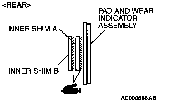 - Pad and wear indicator assembly and inner shim A contact surface