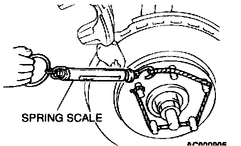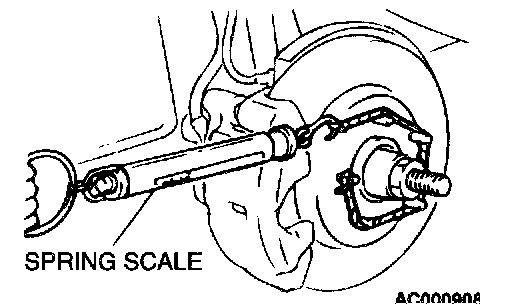 3. Use a spring scale to measure the hub torque in the forward direction. Record hub torque with pads removed.