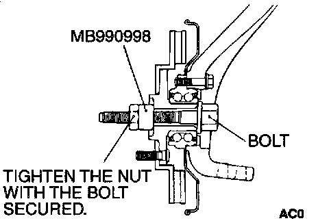 2. Attach special tool MB990998 to the front hub assembly as shown in the illustration, and tighten it to the specified torque.