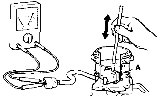 BRAKE FLUID LEVEL SENSOR CHECKThe brake fluid level sensor is in good condition if there is no continuity when the float surface is above "A" and if there is continuity when the float surface is below "A."