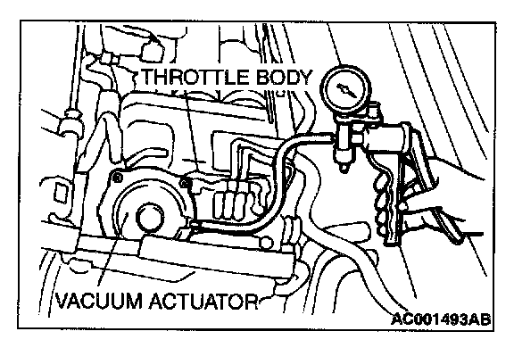 2. Check that the throttle lever operates when applying vacuum, and the vacuum is maintained.