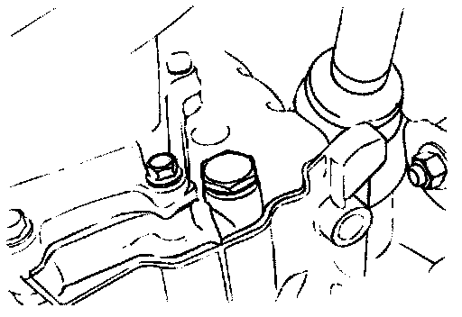 1. Disconnect the hose shown in the illustration which connects the transaxle and the oil cooler (inside the radiator). Place a container under the hose to collect the discharge.