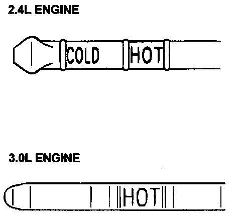 11. Check that the A/T fluid level is at the "COLD" mark on the dipstick. If the level is lower than this, pour in more A/T fluid.