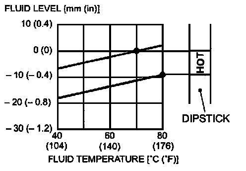 Note: If it takes some amount of time until the A/T fluid reaches its normal operating temperature ( 70 - 80 ° C ( 158 - 176 ° F )), check the A/T fluid level by refering to the diagram.