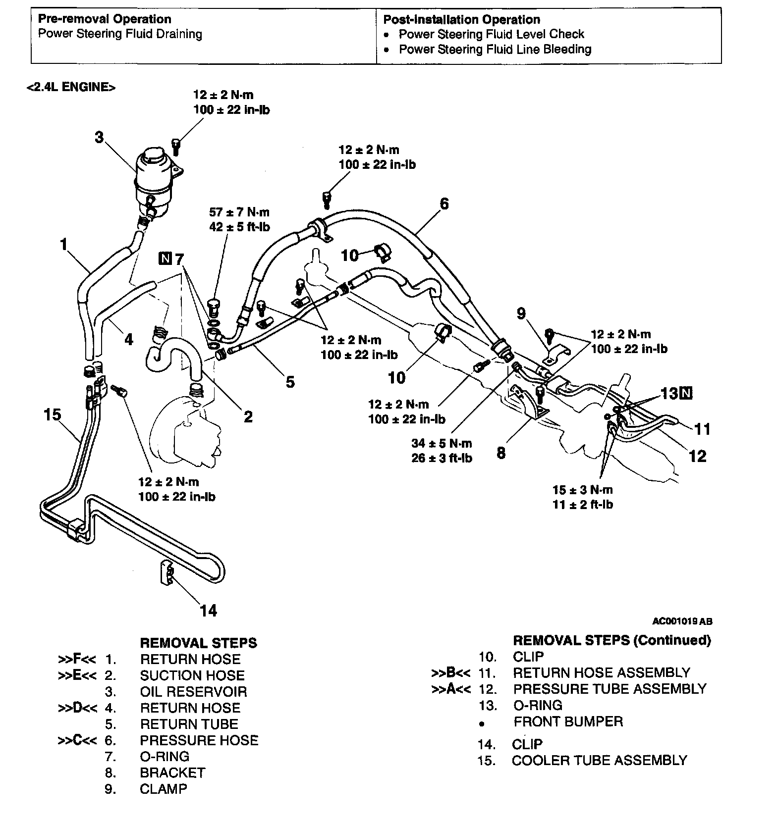 POWER STEERING HOSES<2.4L ENGINE>