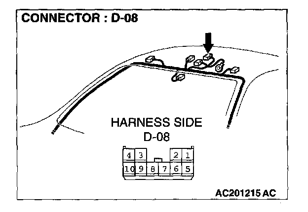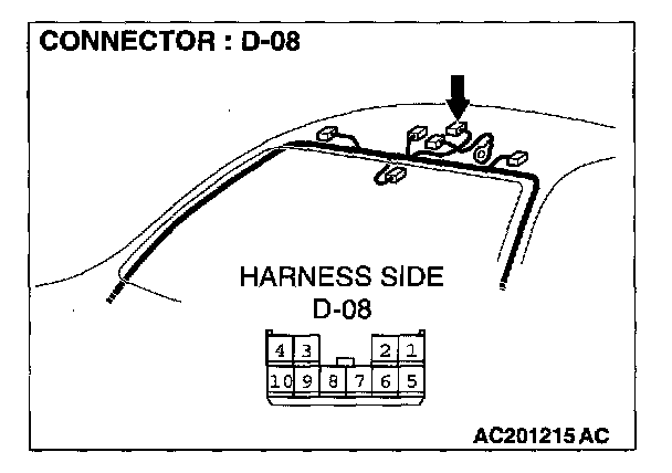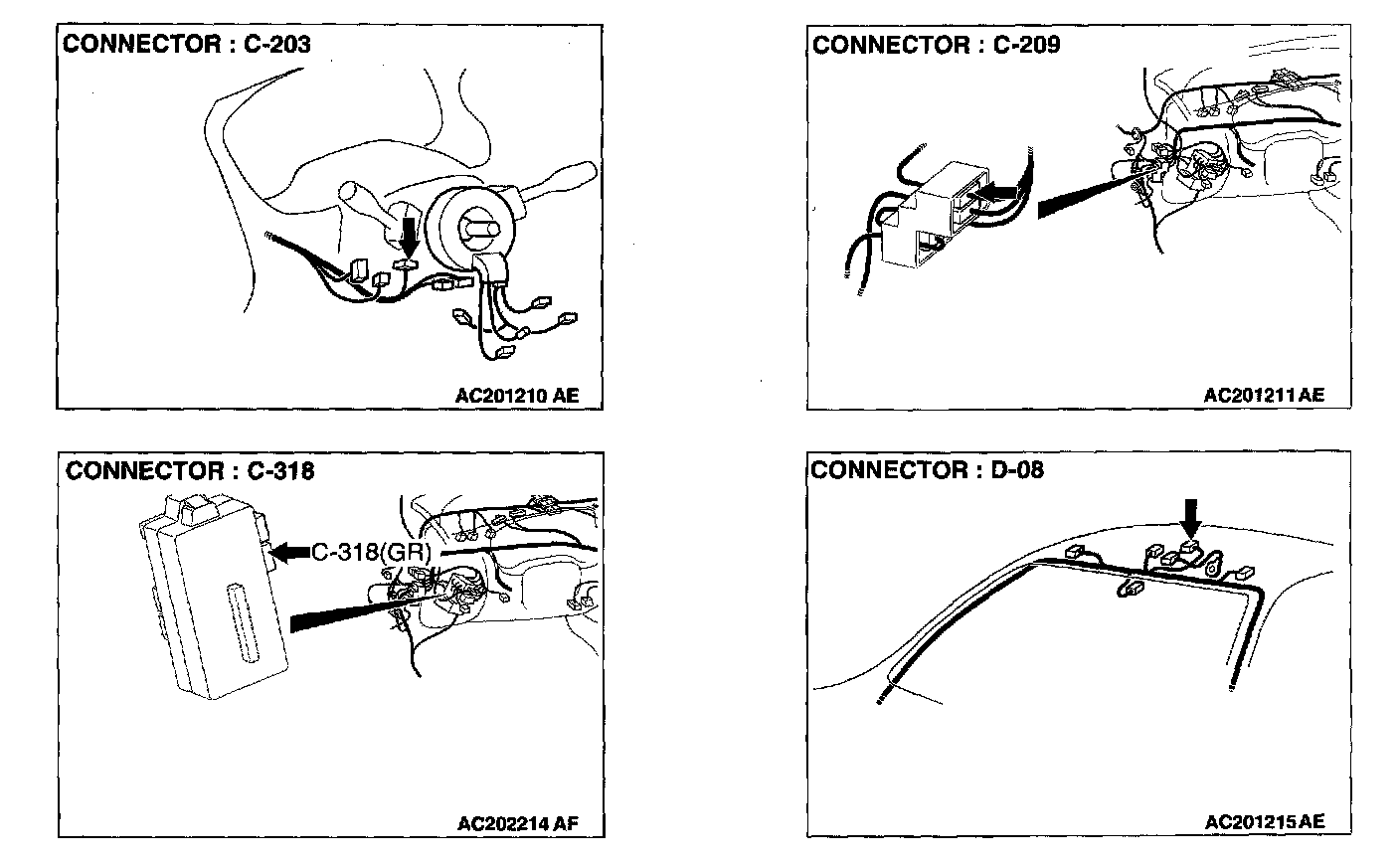 STEP 1. Check the ETACS-ECU connector C-318, column switch connector C-203, front-ECU connector A-11X and sunroof motor assembly connector D-08 for loose, corroded or damaged terminals, or terminals pushed back in the connector.