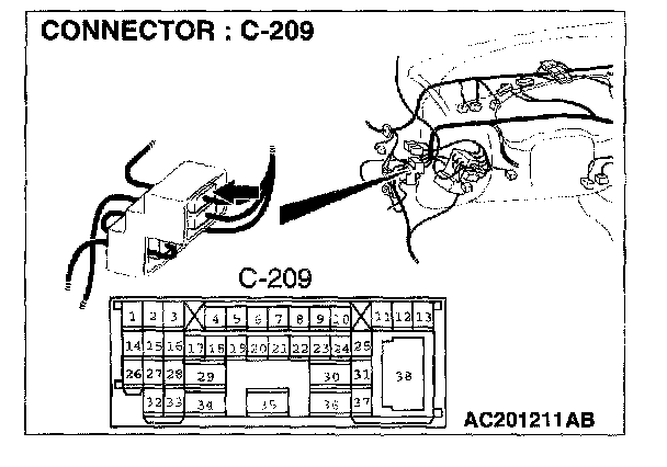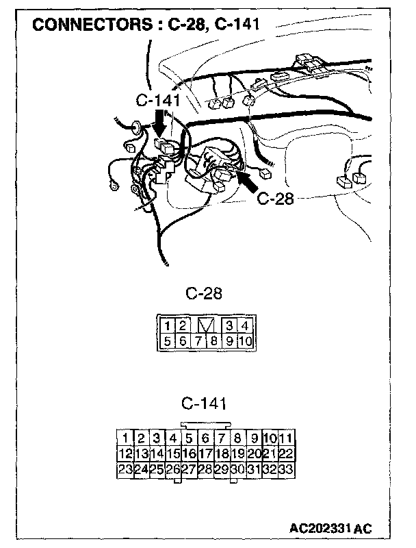 NOTE: Also check intermediate connectors C-28 and C-209 and joint connector C-141 for loose, corroded, or damaged terminals, or terminals pushed back in the connector. If intermediate connectors C-28 and C-209 and joint connector C-141 are damaged, repair or replace the damaged components) as described in Harness Connector Inspection. Diagrams