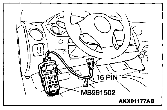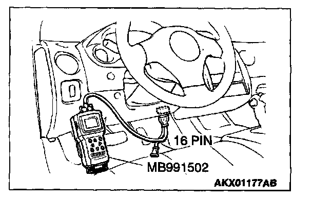 1. Connect scan tool MB991502 to the data link connector.