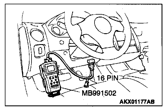1. Connect scan tool MB991502 to the data link connector.