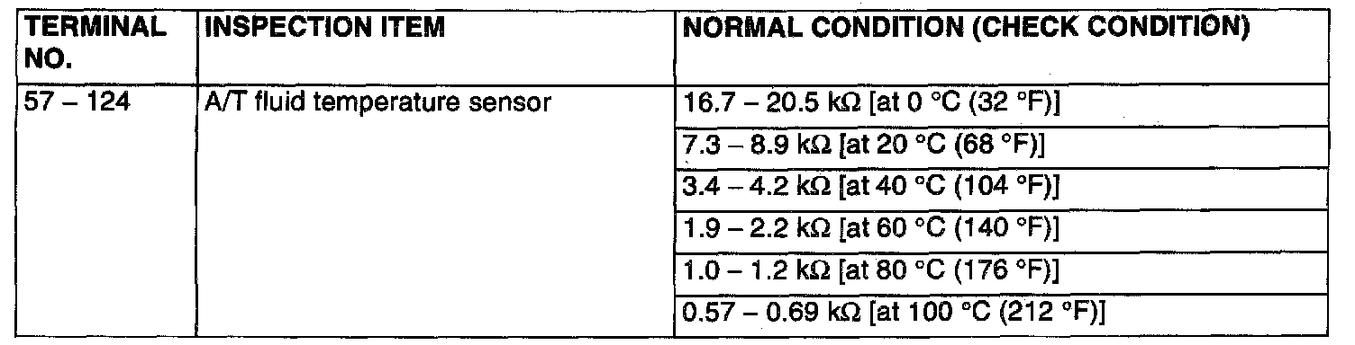 PCM Terminal Resistance and Continuity Inspection Chart