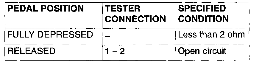 2. Connect an ohmmeter to the interlock switch connector, and then check for continuity when the clutch pedal is fully depressed and when it is released outward.