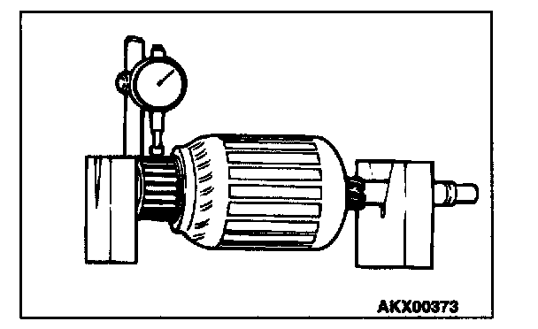 COMMUTATOR CHECK1. Place the armature on a pair of V-blocks, and check the deflection by using a dial gauge.