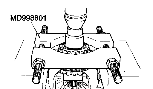 1. Support the taper roller bearing with special tool MD998801, and then set them on the press.