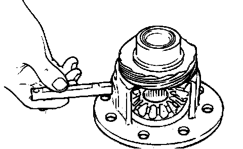 1. Mount a spacer on the back surface of the side gear, and then install the side gear in the differential case.