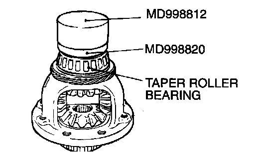 Using special tools MD998812 and MD998820, press install the taper roller bearing with the press.