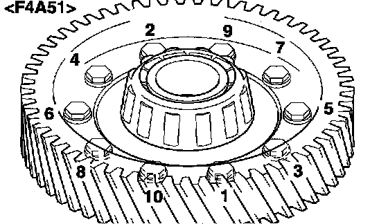 Apply ATF to the bolt, and then tighten the bolts to the specified torque in the sequence shown.