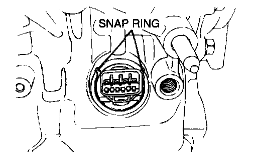 13. Remove the snap ring from the connector. Push the connector into the transaxle case and remove the solenoid valve harness.