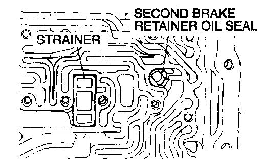 14. Remove the strainer and the second brake retainer oil seal.