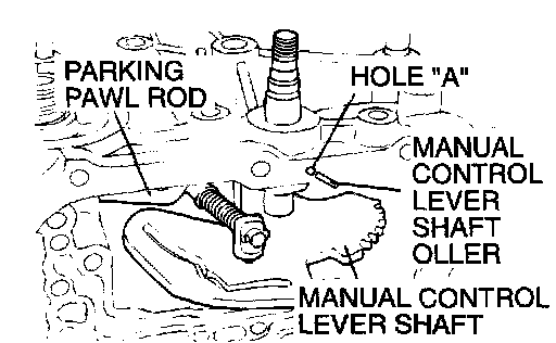 17. Remove the manual control lever shaft and the parking pawl rod.