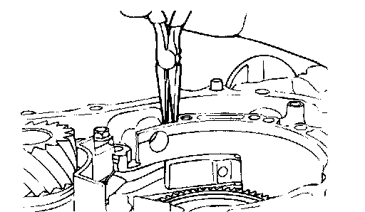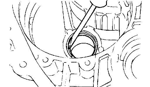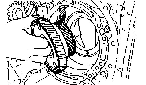 19. Remove the differential bearing outer race and spacer from the torque converter housing.