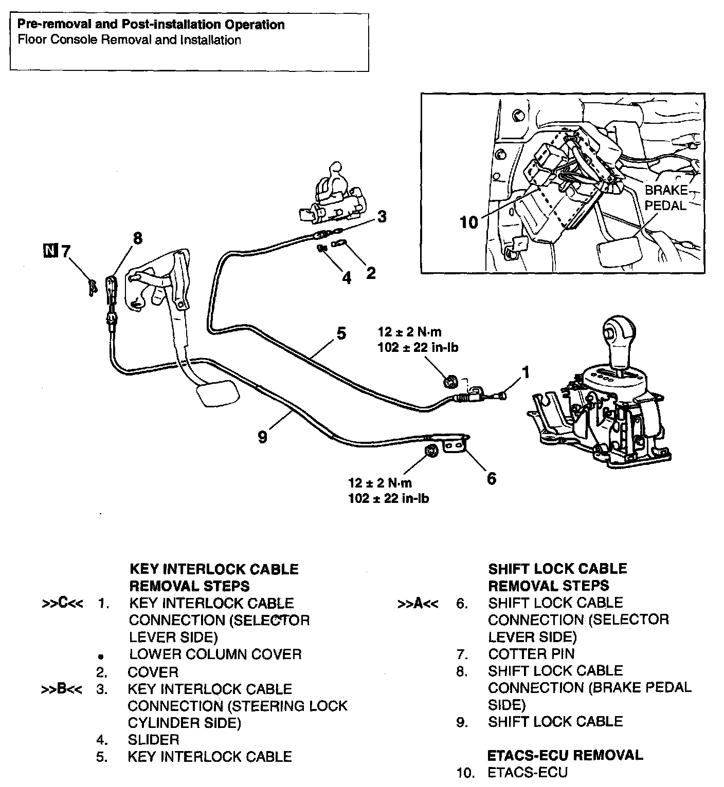 A/T KEY INTERLOCK AND SHIFT LOCK MECHANISMS - REMOVAL AND INSTALLATION: