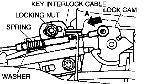 2. Install the spring and washer of the key interlock cable as shown.