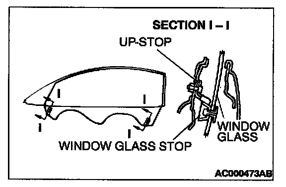 6. Press the up-stop against the window glass stop, and then tighten the up-stop nut.