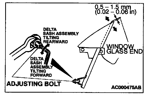 10. Turn the adjusting bolt until the gap between the delta sash assembly and the window glass end meets the shown dimension.