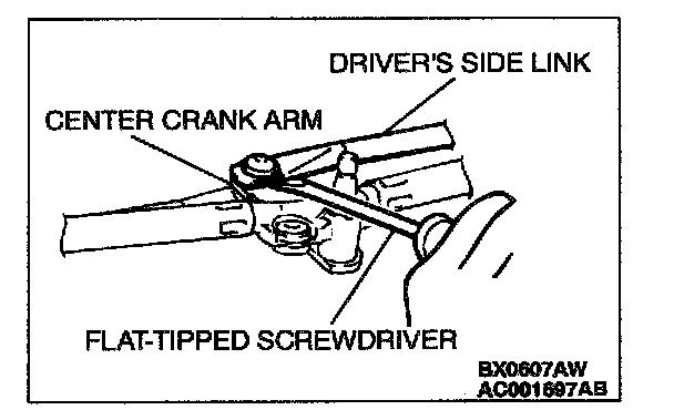 3. Use a flat-tipped screwdriver to disengage the driver's side link from the center crank arm.