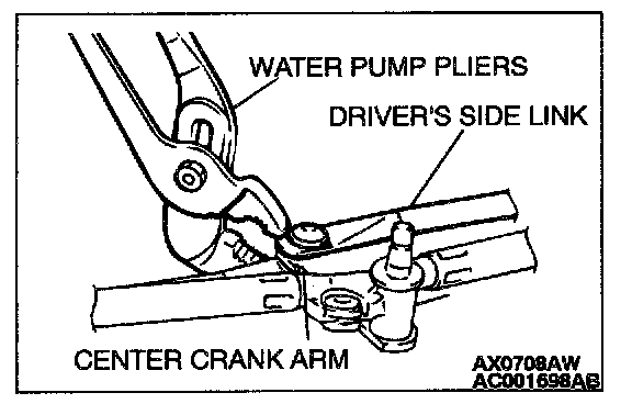 3. Use water pump pliers to engage securely the driver's side link with the center crank arm.
