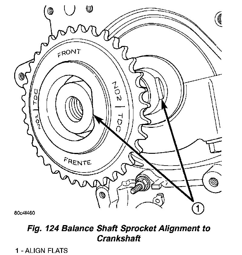 4. Align flat on balance shaft drive sprocket to the flat on crankshaft (Fig. 124).
