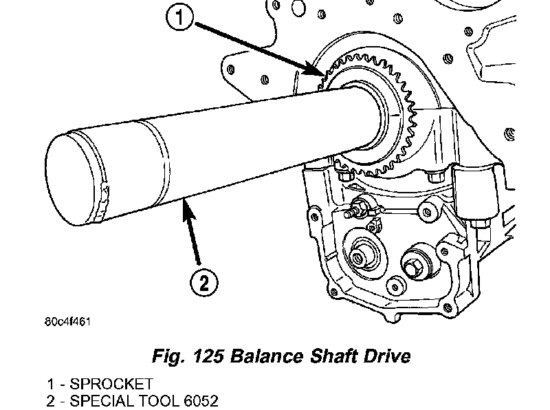 5. Install balance shaft drive sprocket on crankshaft using Special Tool 6052 (Fig. 125).