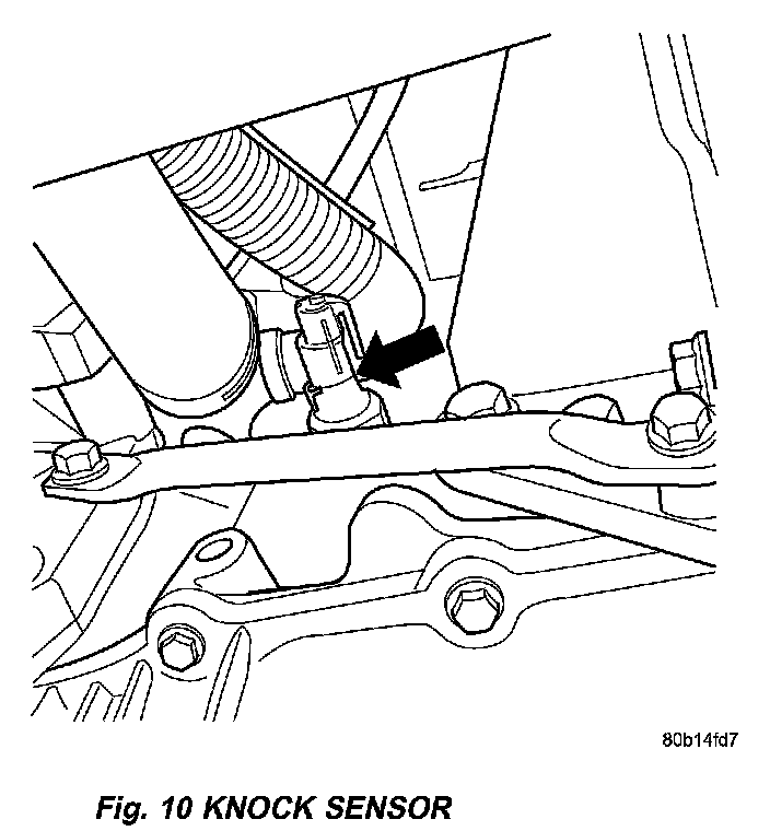 1. Install knock sensor. Tighten knock sensor to 10 Nm (7 ft. lbs.) torque. Over or under tightening effects knock sensor performance, possibly causing improper spark control.