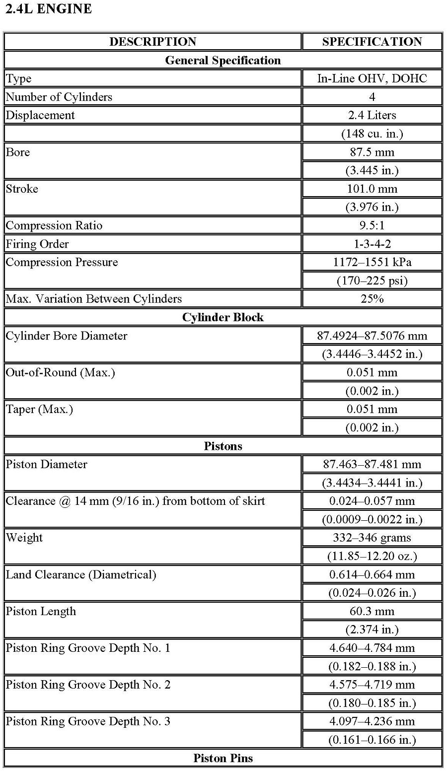 Stratus Sedan L4-2.4L VIN X