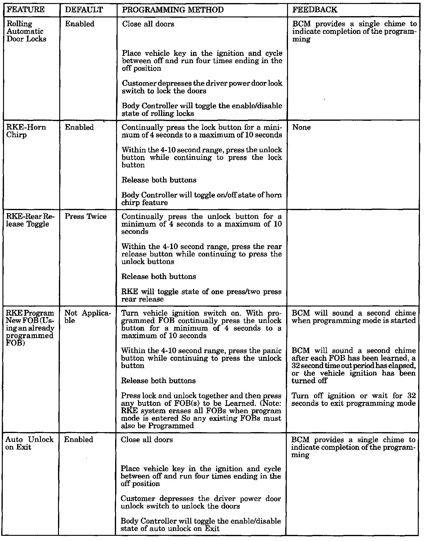 Door Lock Inhibit (key in ignition or headlamps/park lamps on)