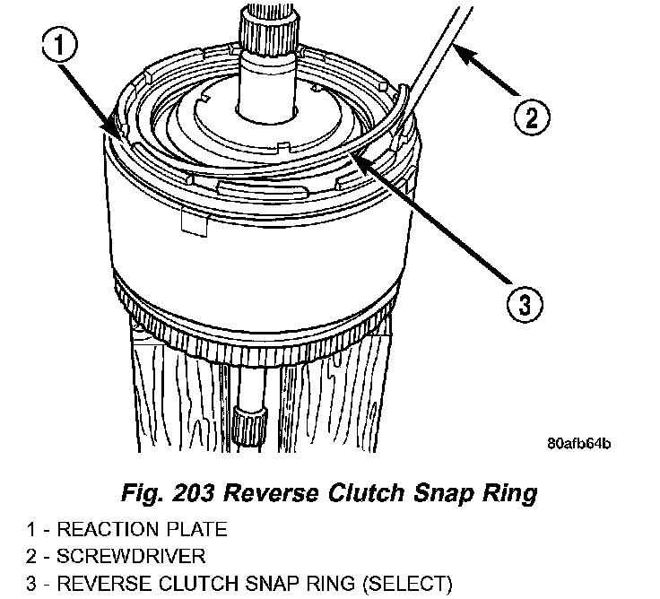 3. Remove reverse clutch snap ring (Fig. 203).