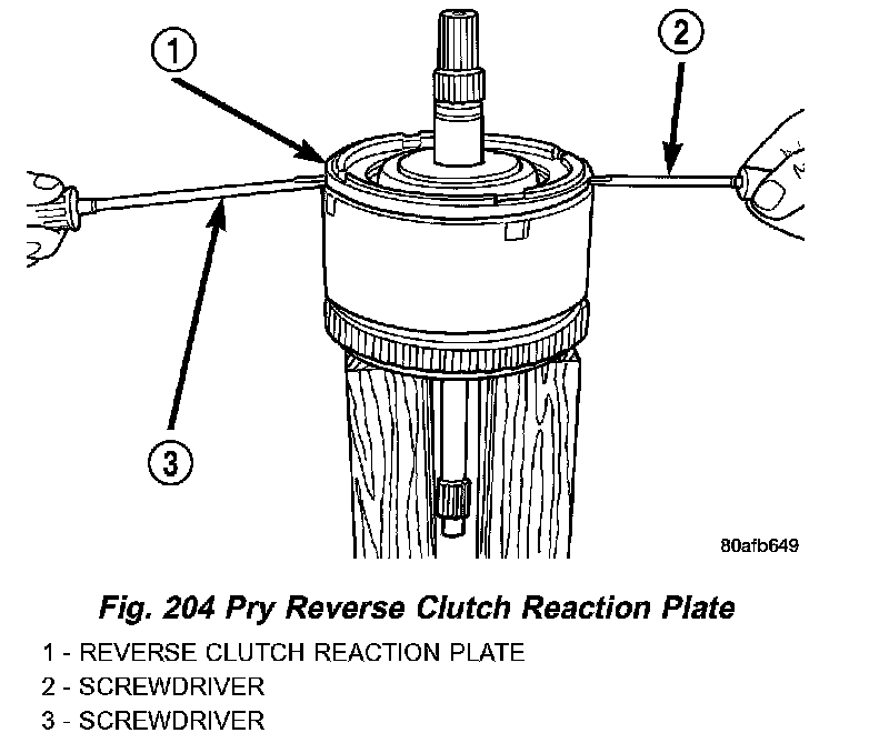 4. Pry up and remove reverse clutch reaction plate (Fig. 204) (Fig. 205).