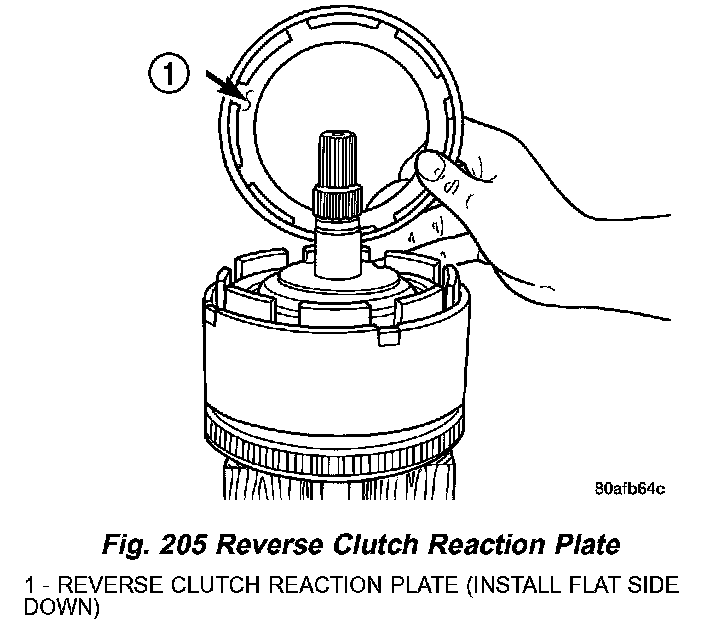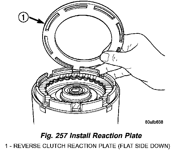 29. Install reverse clutch reaction plate with the flat side down towards reverse clutch (Fig. 257).