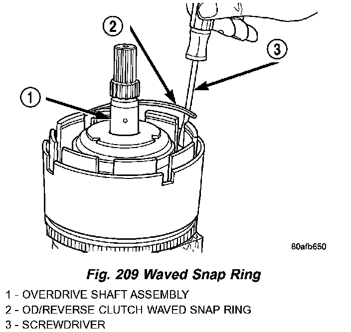 8. Remove OD/Reverse pressure plate wave snap ring (Fig 209).
