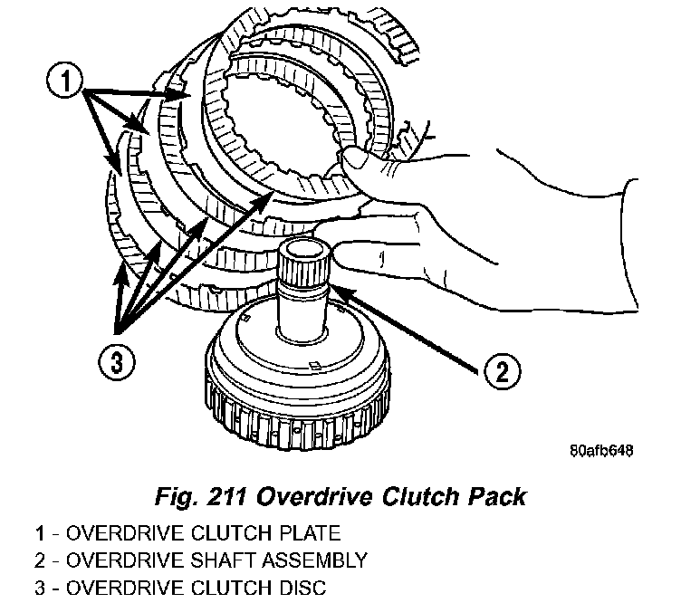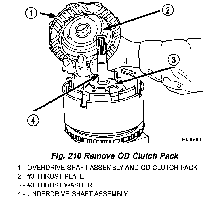 9. Remove OD shaft/hub and OD clutch pack (Fig. 210) (Fig. 211).