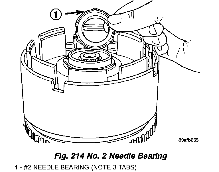 12. Remove the # 2 needle bearing (Fig. 214).