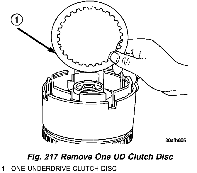15. Remove the first UD clutch disc (Fig. 217).