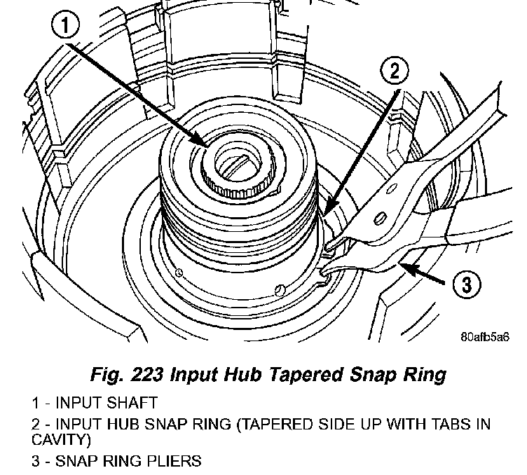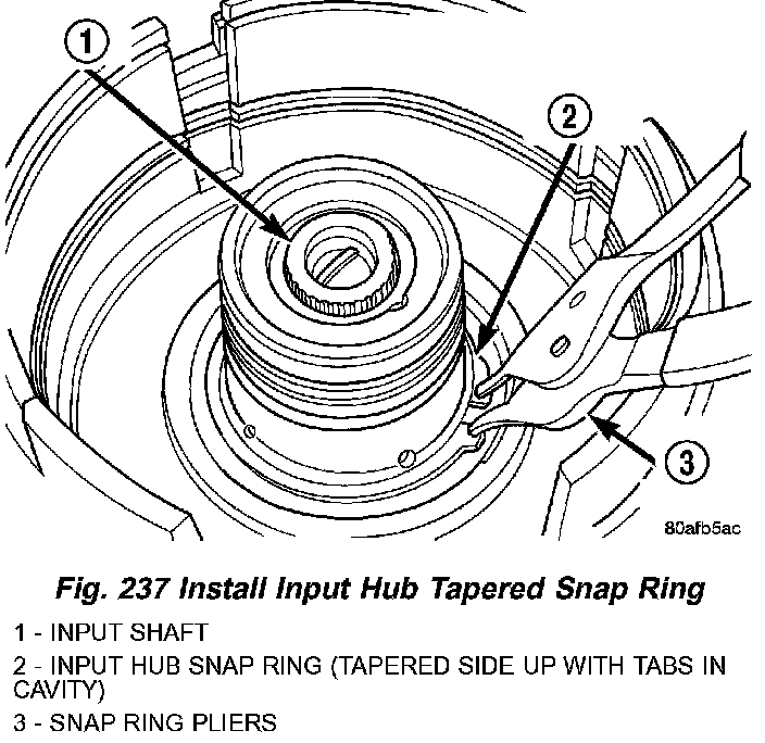 6. Install input hub tapered snap ring (Fig. 237).