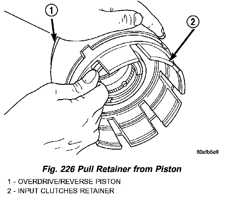 23. Separate clutch retainer from OD/Reverse piston (Fig. 226).