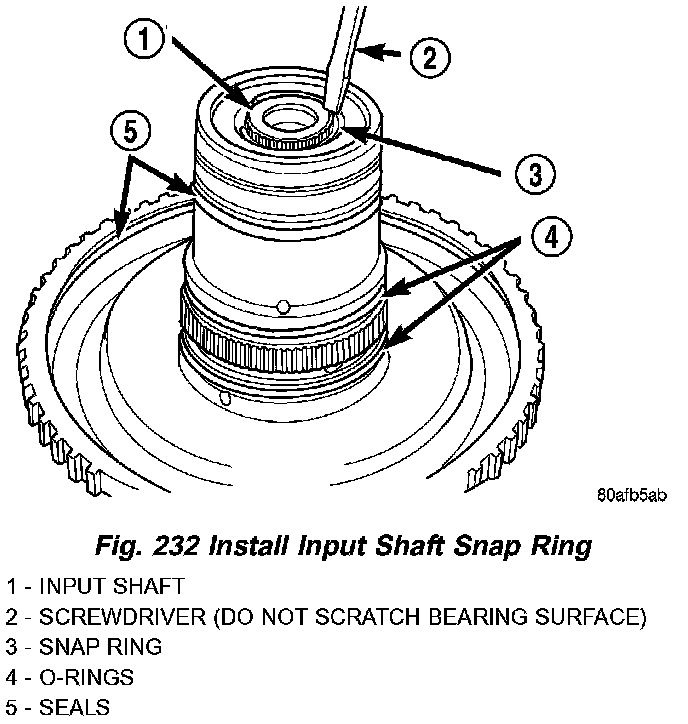 2. Install input shaft snap ring (Fig. 232).