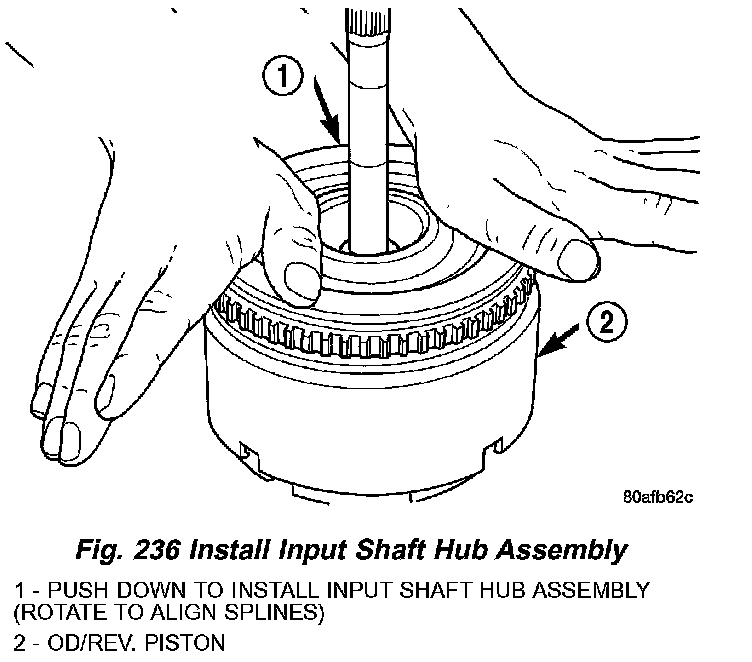 5. Install the input hub/shaft assy. to the OD/Reverse piston/clutch retainer assy. (Fig. 236).