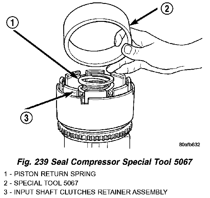 8. Install UD piston return spring and Tool 5067 as shown in (Fig. 239).
