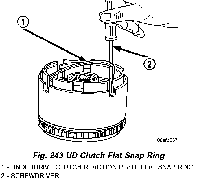 11. Install the UD clutch flat snap ring (Fig. 243).