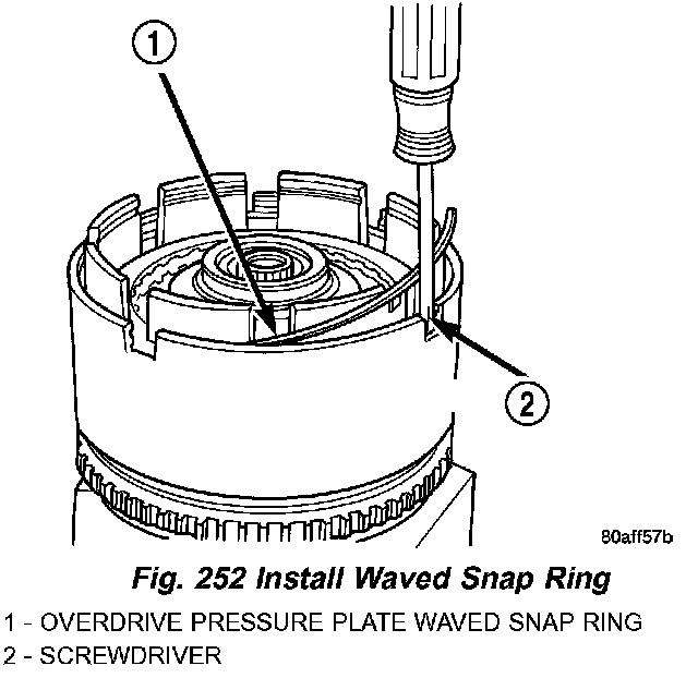 22. Install OD pressure plate waved snap ring (Fig. 252).