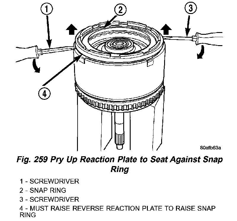 31. Pry up reverse reaction plate to seat against snap ring (Fig. 259).